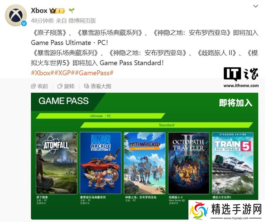 另外根据规划,游戏《原子陨落》《暴雪游乐场典藏系列》《神隐之地:安布罗西亚岛》将加入 Game Pass Ultimate・PC;《暴雪游乐场典藏系列》《神隐之地:安布罗西亚岛》《歧路旅人 II》《模拟火车世界 5》将加入 Game Pass Standard。