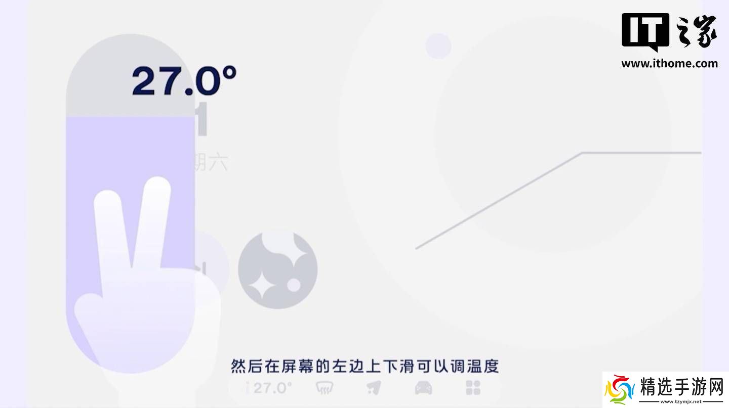 视频中的车机界面设计简洁大方,用户可以通过手势操作轻松实现各项功能的调节。具体来说,用户只需用双指在中控屏幕上横向滑动,即可调节风量大小。而在屏幕左侧上下滑动,则可以调整车内温度;在屏幕右侧上下滑动,则能控制音量大小。这种创新的手势操作方式不仅方便快捷,更增添了驾驶乐趣。