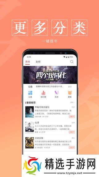 3、提供严格的小说分类,让用户可以提供分类,快速找到自己喜欢的小说类型,大大增加用户的阅读体验。