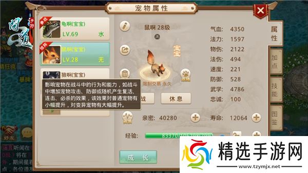 3、另外宠物的亲密度还可以提升防御效果,当宠物亲密度在10w以上还有几率复活;