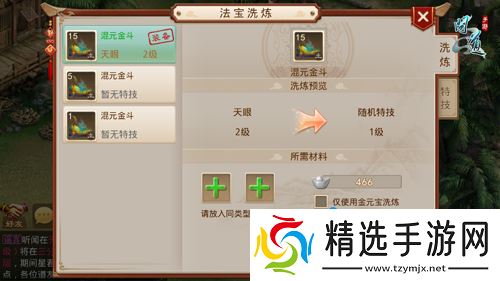 3、洗练成功后,如果主法宝没有特殊技能,将会随机获得1个1级的法宝特殊技能;