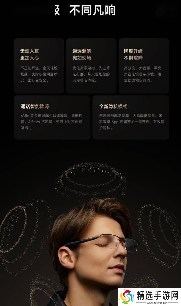为了满足不同用户的审美需求,MIJIA智能音频眼镜2提供了5款不同的框型供用户选择。在声学方面,该眼镜采用了开放声场设计,优化了声学架构并提升了响度,同时还支持通话智能降噪功能,即使在4.5米/秒的风速下也能保持清晰的通话效果。