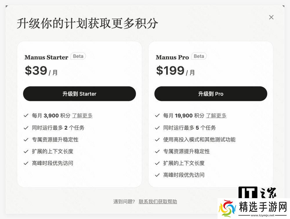 据Manus公布的方案,用户可以选择两种订阅模式。Manus Starter方案每月收费39美元(按当前汇率约283元人民币),提供3900积分,支持同时运行两个任务。而针对更高需求的用户,Manus Pro方案则每月收费199美元(约1446元人民币),附赠19900积分,允许同时运行五个任务,并解锁了高投入模式及一系列测试功能。
