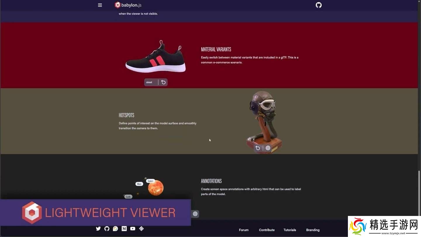 在性能和兼容性方面,Babylon.js 8.0也进行了全面优化。新版的轻量级查看器体积更小,支持动态加载依赖项,能够轻松适配任意网页。同时,查看器配置工具也得到了改进,通过简单的HTML属性设置,即可快速匹配网站风格,大大简化了开发流程。
