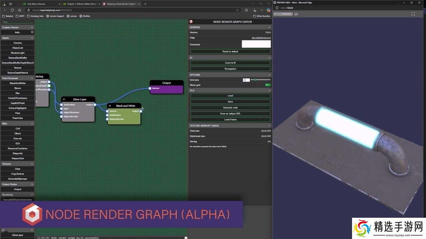 Babylon.js 8.0还引入了Alpha版的Node Render Graph,这一功能为开发者提供了前所未有的渲染管线定制能力。无需编写繁琐的底层代码,开发者即可自由定义渲染流程,灵活调整画面输出,从而大大提升了开发效率和创作自由度。