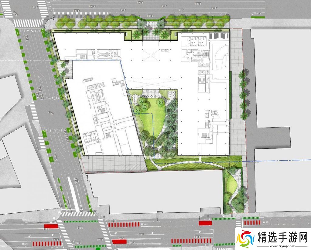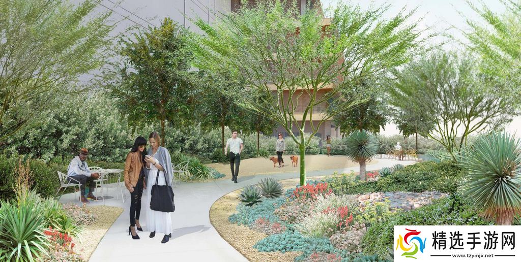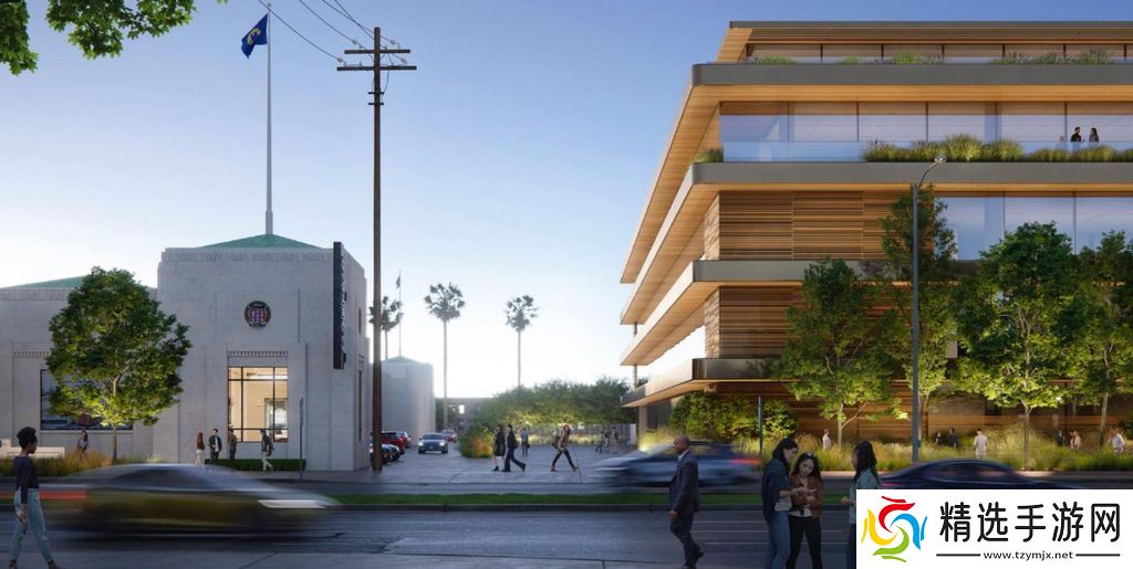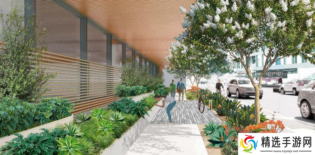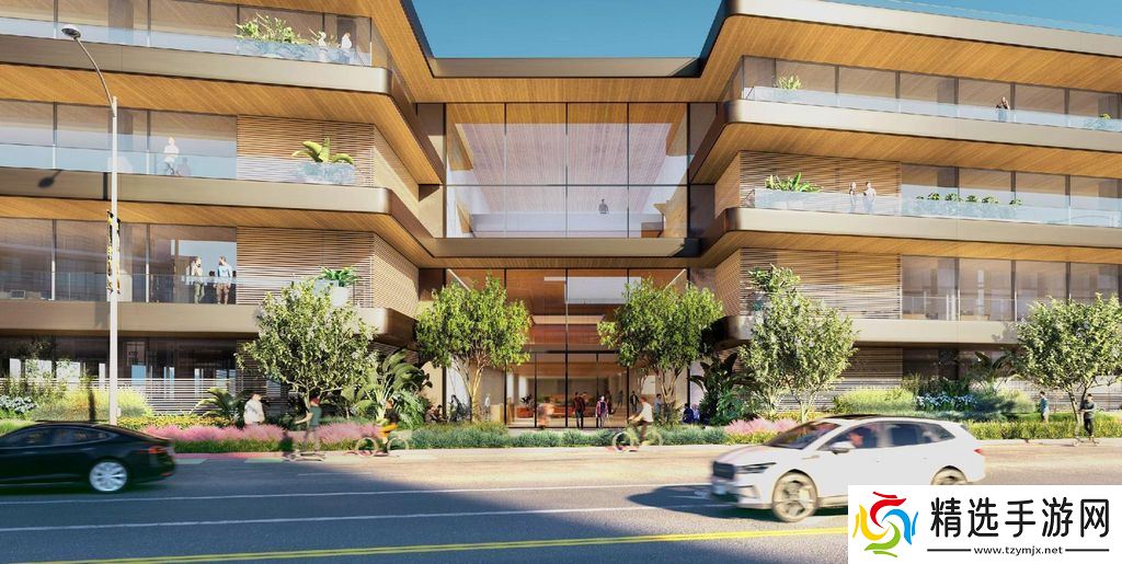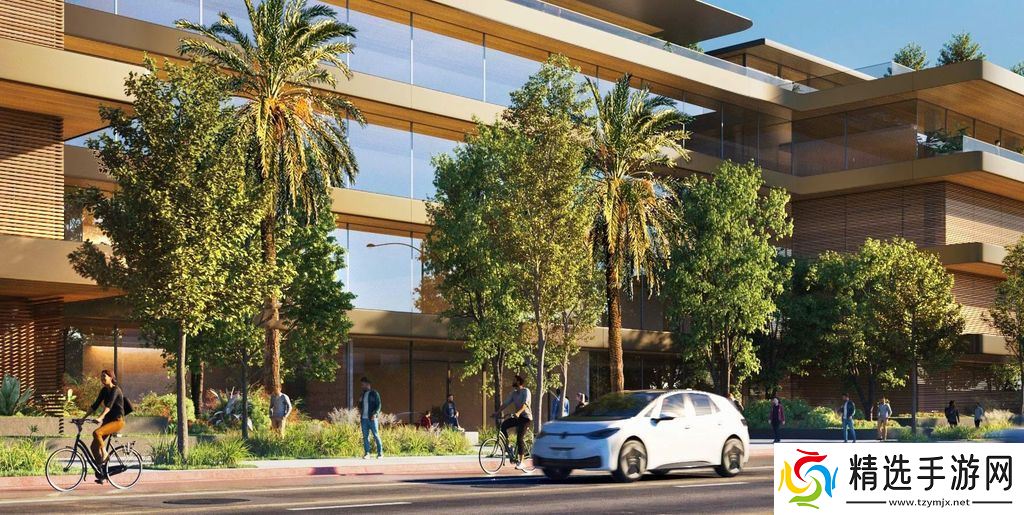 该建筑拥有 5.8 万平方英尺开放空间,包括中央庭院、威尼斯大道与 National 大道两侧的景观步道。面向 Washington 大道的后方将打造小型公园式景观区,毗邻苹果现有办公点(8777 Washington Boulevard)。