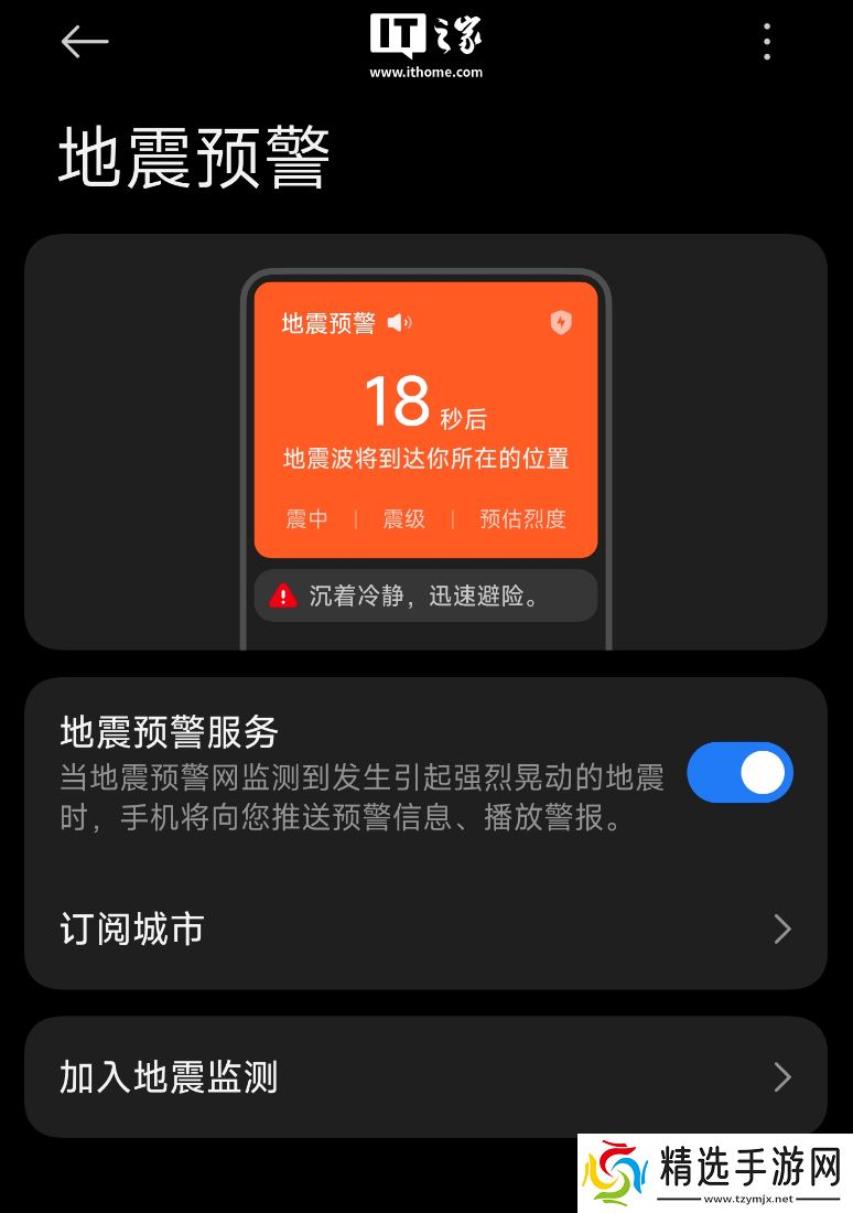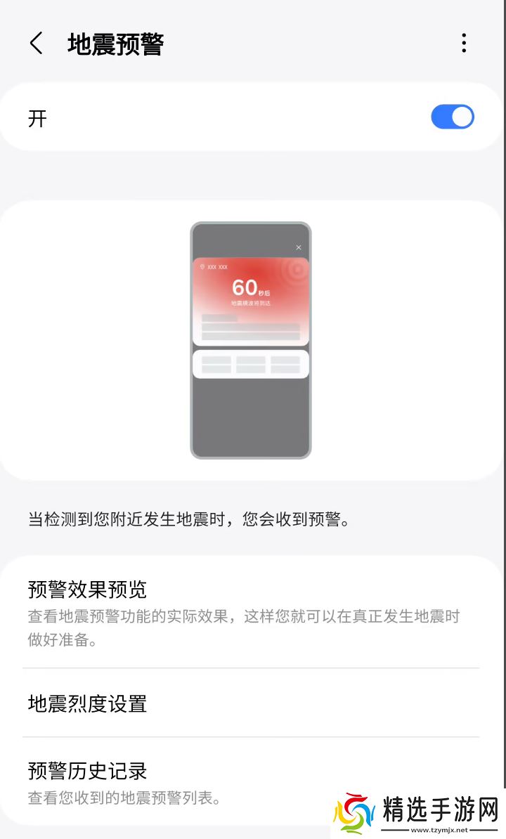 开启后当检测到地震时,会及时向用户发送地震预警通知。