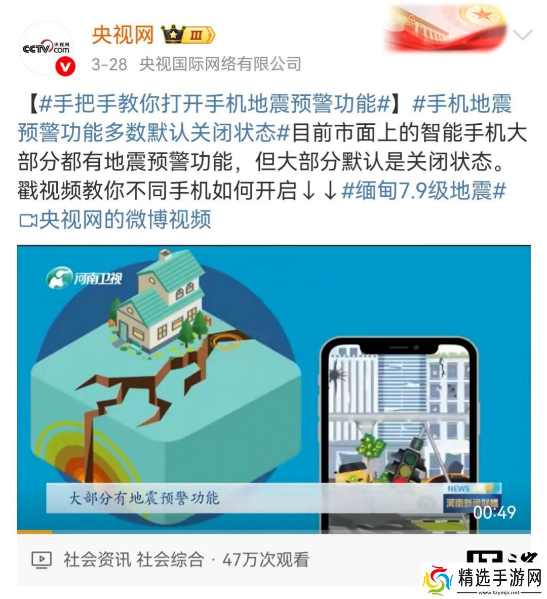 对此在昨天(3 月 29 日),网友们针对“预警”在社交媒体上展开了讨论,央视网援引河南卫视视频表示目前市面上的大部分智能手机都内置地震预警功能,但有的是默认关闭状态。