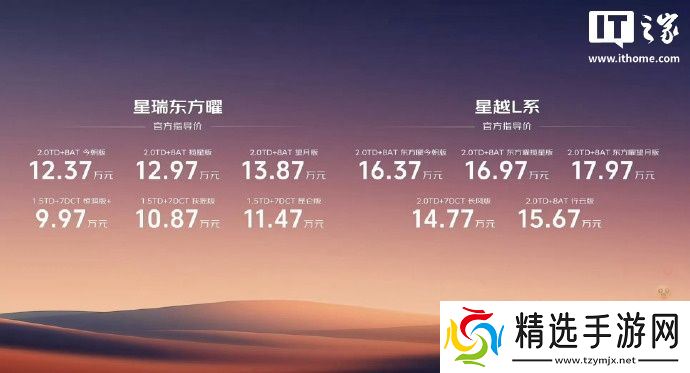 本站 3 月 20 日消息,吉利星越 L 新增行云版和东方曜・今朝版两款车型,官方指导价分别为 15.67 万元和 16.37 万元,两款车型均搭载了 2.0TD 高功率发动机。