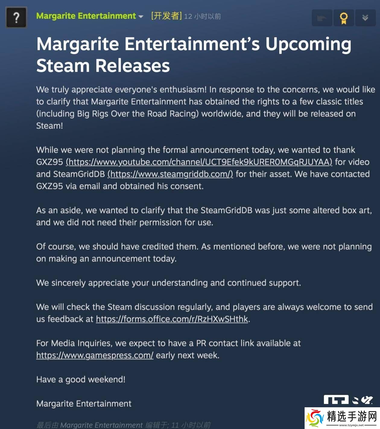 近日,游戏发行商Margarite Entertainment宣布了一个令人意外的消息:他们已经获得了《大货车极限竞赛》的版权,并计划将其重新发布到Steam平台上。这一消息让不少老玩家感到惊喜,也引发了新一轮的讨论和期待。
