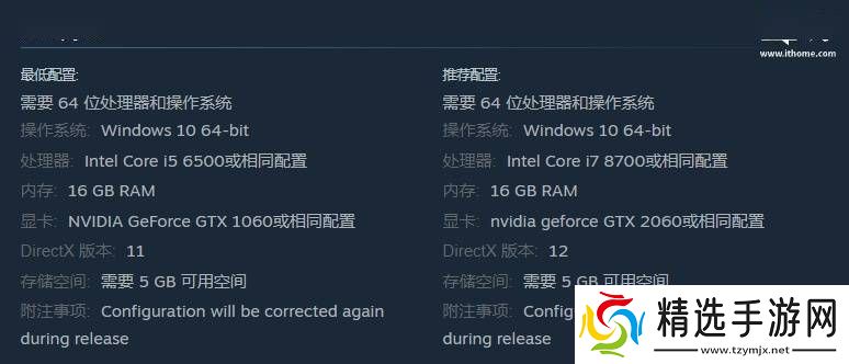 在配置方面,《琉隐神渡》对硬件的要求并不算太高。最低配置仅需64位处理器和操作系统、Windows 10 64-bit系统、Intel Core i5 6500或相同配置的处理器、16GB RAM内存、NVIDIA GeForce GTX 1060或相同配置的显卡以及5GB的可用存储空间。而推荐配置则要求更高一些,包括Intel Core i7 8700或相同配置的处理器、nvidia geforce GTX 2060或相同配置的显卡以及DirectX 12版本等。