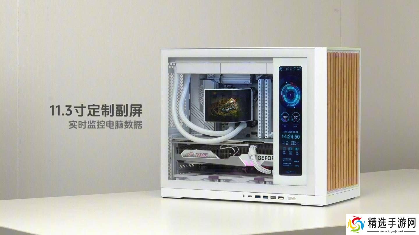 G600机箱在扩展性方面表现出色,配备了5条PCIe扩展槽,足以满足高端硬件的安装需求。其三维尺寸为427×220×362毫米,体积约为34升,能够支持高达170毫米的处理器散热器。机箱的左侧前部区域还提供了选配11.3英寸定制副屏的选项,增强了整机的实用性和观赏性。
