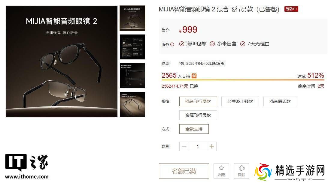 小米近期推出的MIJIA智能音频眼镜2在市场上引起了热烈反响。这款产品的众筹活动于3月26日在小米有品平台上正式拉开帷幕,众筹价格设定为999元。据平台数据显示,四种不同款式的眼镜在极短的时间内便全部售罄,显示出消费者对这款产品的极高热情。