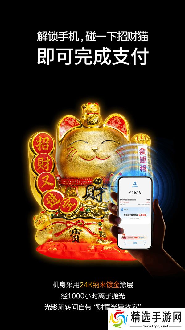 这款喵机iMoney Cat的外观设计极为奢华,机身覆盖了一层24K纳米镀金涂层,闪烁着诱人的金色光芒。每当用户的手机与其轻轻一触,便仿佛激活了某种神秘的力量,一股财富的光晕瞬间弥漫开来,让人仿佛置身于财运亨通的境地。