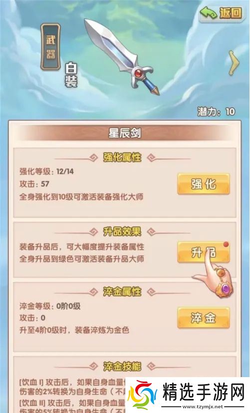 3、我们需要点击升品按钮,即可对武器进行品质属性的提升;