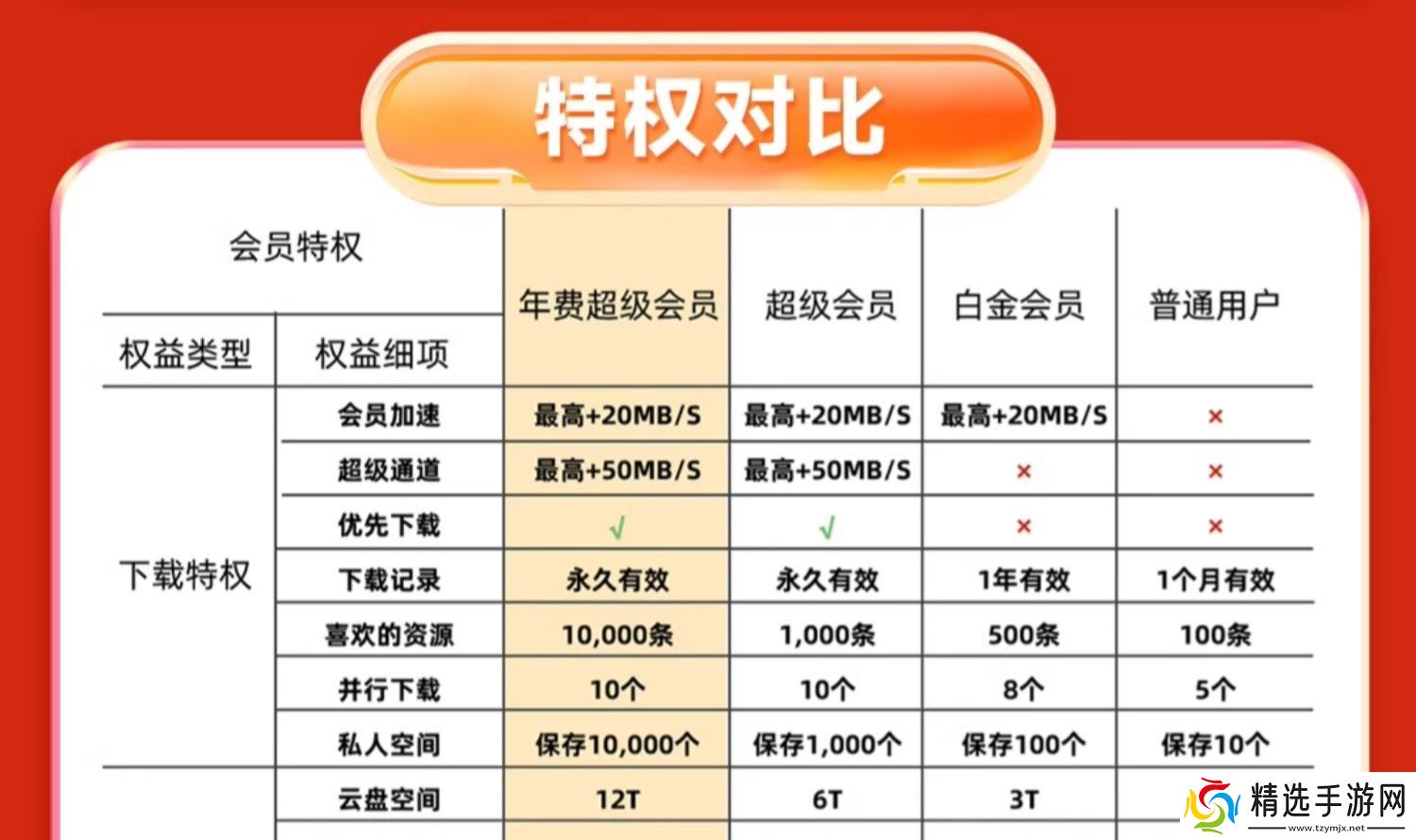 迅雷白金会员、超级会员权益对比:点此查看官方详解。