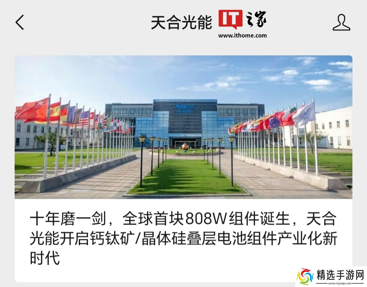 本站 3 月 24 日消息,位于天合光能的光伏科学与技术全国重点实验室昨日晚宣布,其研发的 210 大尺寸钙钛矿 / 晶体硅两端叠层电池组件(面积 3.1m2)经过 TÜV 南德意志集团(TÜV SÜD)测试实验室认证,峰值功率达 808W,成为全球首块功率突破 800W 的工业标准尺寸光伏组件产品,创新世界纪录。