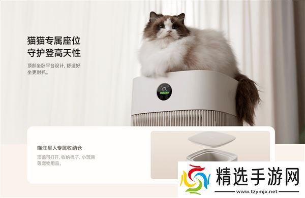 在智能化方面,这款净化器支持米家App和小爱同学的智能控制,用户可以通过手机或语音指令轻松调节各项设置。同时,它还配备了萌宠版显示屏,为宠物家庭增添了趣味性。在设计上,净化器顶部特别设计了小猫坐卧平台以及宠物用品收纳仓,不仅美观实用,还充分考虑了宠物的安全。防咬型电源线、宠物锁以及护宠式格栅等设计,有效防止了幼宠受伤的风险,而倾倒断电功能更是进一步提升了产品的安全性。