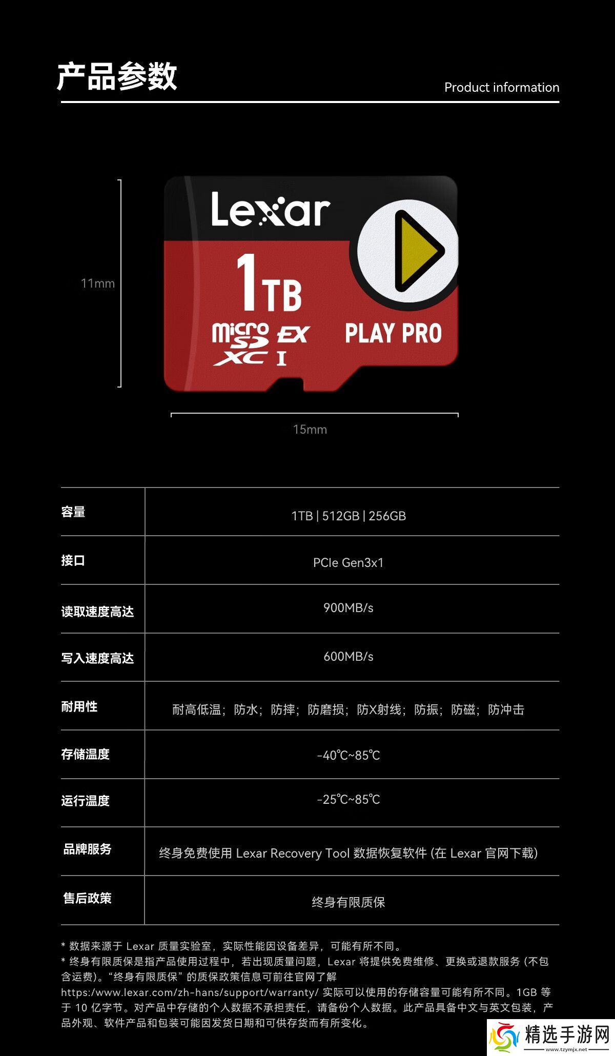 本站 4 月 4 日消息,雷克沙昨日在美国推出全球首款 1TB microSD Express 存储卡产品 —— 雷克沙 PLAY PRO microSDXC Express。该存储卡可用于任天堂新发布的 Switch 2 游戏机。