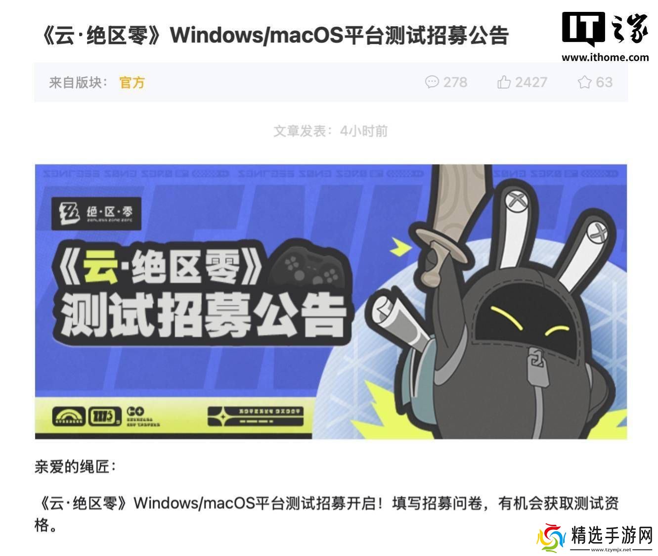 米哈游近日在其官方社区“米游社”发布了一则重要公告,宣布其最新力作《绝区零》即将在Windows及macOS平台上展开测试招募活动。这一消息迅速引起了广大游戏爱好者的热烈关注。