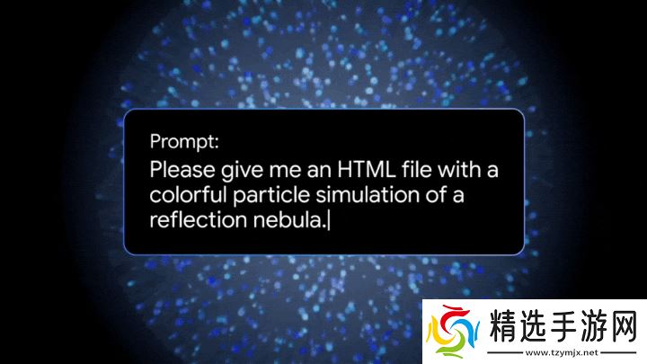 另外,它还能开发粒子系统模拟,给出了一个 HTML 文件,创造出了反射星云的沉浸式交互模拟场景。