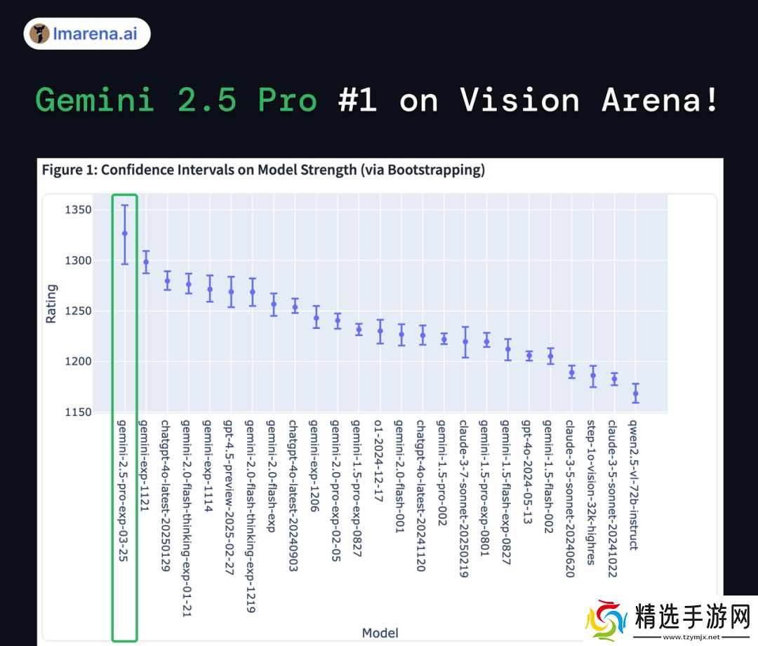 此外,Gemini 2.5 Pro 还成功登顶了视觉竞技场(Vision Arena)排行榜榜首!