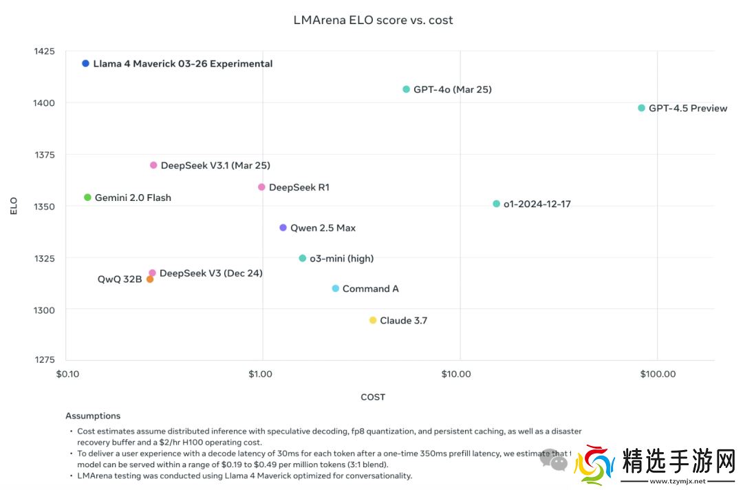 Llama 4 Maverick,128 位专家的 170 亿激活参数多模态模型,击败 GPT-4o 和 Gemini 2.0 Flash,与 DeepSeek-V3 同等代码能力参数只要一半,主打与 DeepSeek 一样的性价比,单个 H100 主机即可运行。