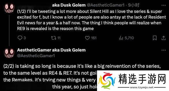 近日,知名爆料人士Dusk Golem在X平台上发布了一条引人注目的消息,透露了《生化危机》系列新作《生化危机9》的近况。据其所述,这款备受期待的作品之所以迟迟未发售,是因为它将成为《生化危机》系列的一次重大革新,其变革程度堪比《生化危机4》和《生化危机7》。
