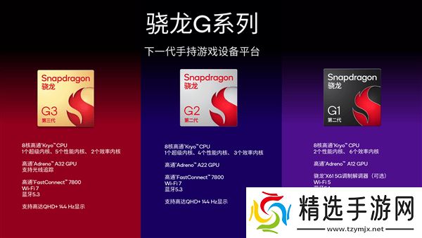 高通近期震撼发布了其全新的骁龙G系列游戏平台,这一系列专为掌机和便携式游戏设备量身打造,共推出了三款性能各异的芯片:第二代骁龙G1、第二代骁龙G2以及旗舰级的第三代骁龙G3。