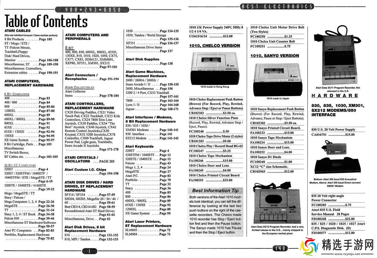 不仅如此,Best Electronics的官网上还列出了超过五千种雅达利相关商品,这些商品只是其中最受欢迎的一部分。为了迎合复古游戏爱好者的需求,顾客还可以订购Best Rev. 10 All雅达利目录,体验一把复古购物的乐趣。这本厚达半英寸、重达635克的纸质目录,收录了330张雅达利零件图片,还包含了原型信息、维修指南、定制芯片及替换IC完整列表等内容,堪称复古游戏爱好者的宝典。