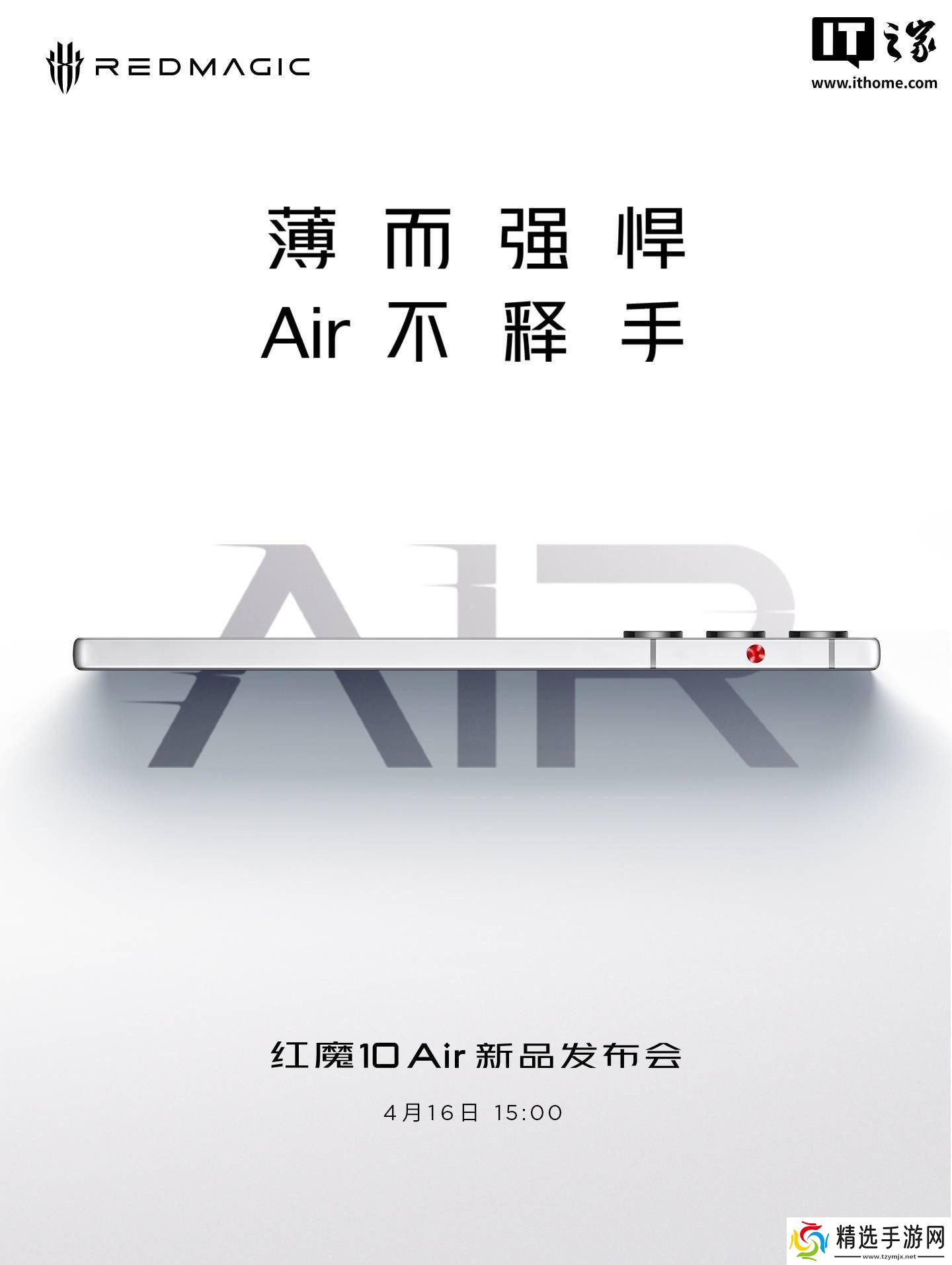 红魔游戏手机近日宣布了一项重要消息,其最新力作红魔10 Air的发布会已定于4月16日下午3点举行。这款新机以“薄而强悍、Air不释手”为宣传口号,预示着它将在轻薄设计与强大性能之间找到完美平衡。