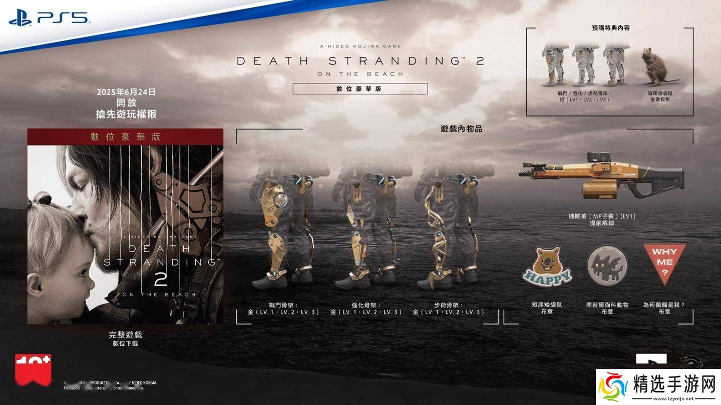 对于追求极致收藏体验的玩家来说,1800港币(约1677元人民币)的收藏版无疑是最佳选择。这个版本不仅包含了完整的游戏数字下载和48小时抢先游玩权限,还附赠了一个精美的收藏盒、一个15寸的麦哲伦巨人模型、一个3寸的偶人吊饰、一张收藏卡以及小岛秀夫的亲笔信。玩家还将获得一系列游戏内物品,包括提前解锁的机关枪(MP子弹Lv1)、战斗骨架、强化骨架和步荷骨架的金色版本(均为Lv1至Lv3),以及短尾矮袋鼠、开若尔猫科动物和“为何偏偏是我?”等特色布章。