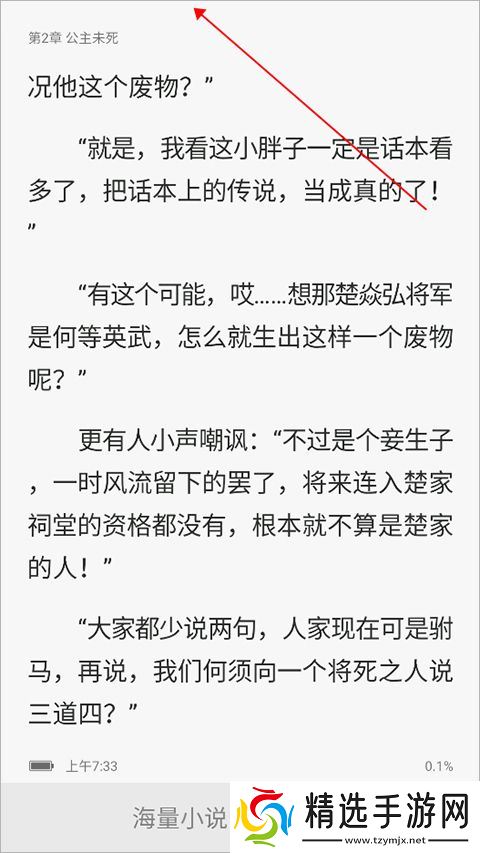 1、用户在看书时点击页面最顶部。