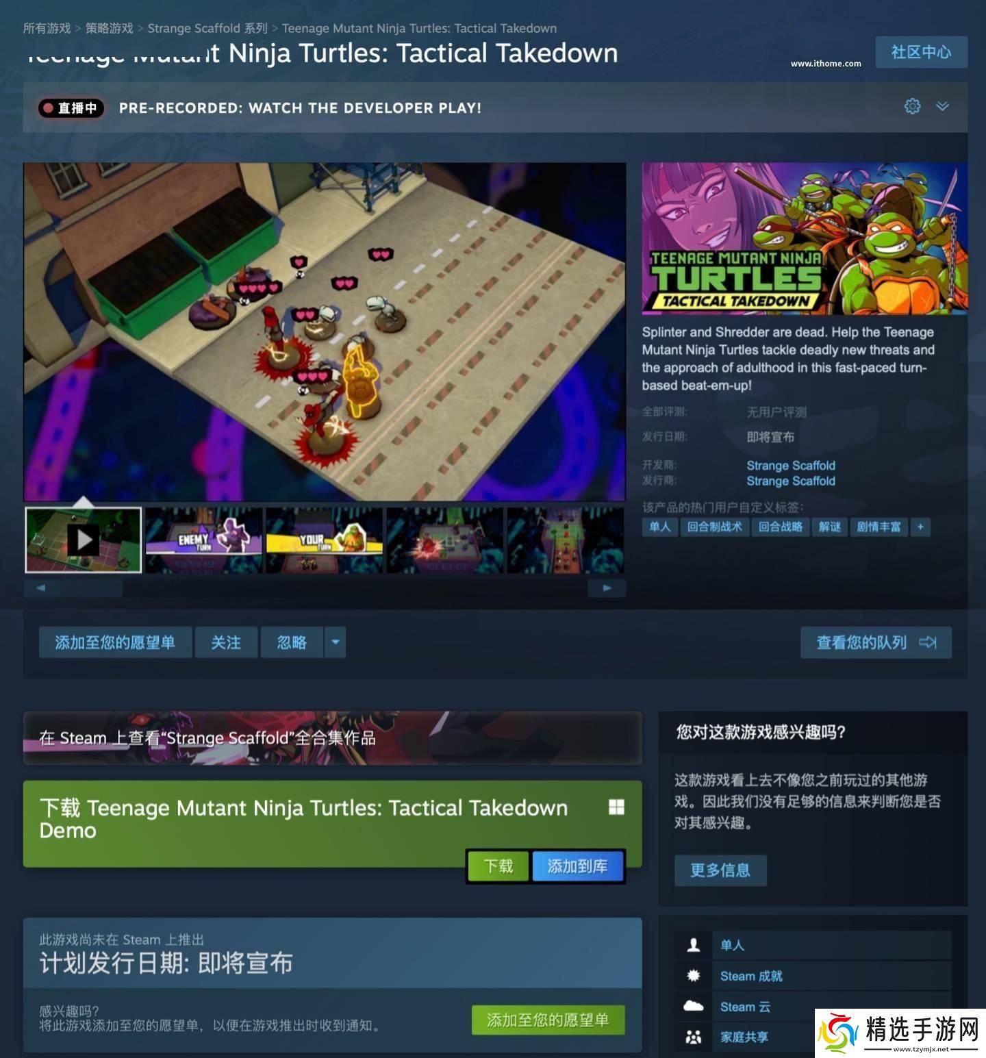 目前,《忍者龟:战术性打击》已经在Steam平台上架,并提供了免费DEMO供玩家下载试玩。不过,值得注意的是,游戏目前尚未支持简体中文,这对于部分国内玩家来说可能会稍显不便。