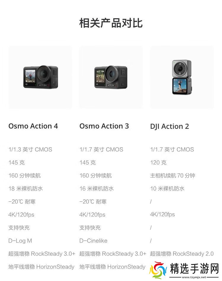 本站附Osmo Action 4运动相机参数及与前代对比如下:
