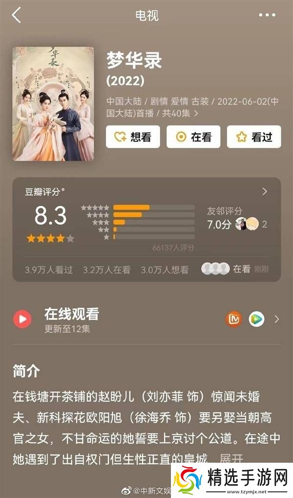 据了解,《梦华录》于2022年6月2日在某知名视频平台首播,随后在同年11月22日登陆北京卫视,实现了从网剧到上星剧的华丽转身。该剧一经播出,便迅速吸引了大量观众的目光,在网络上引发了热烈讨论。其精良的制作、扣人心弦的剧情以及演员们的精湛演技,都让观众们赞不绝口。