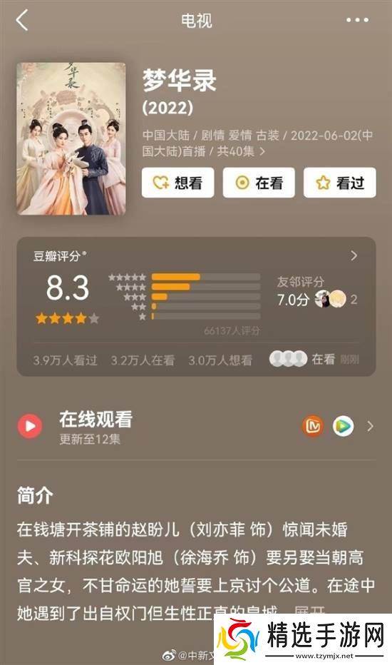 《梦华录》由刘亦菲、陈晓、柳岩等实力派演员领衔主演,自2022年6月2日首播以来,迅速在网络上掀起热潮,引发了广泛讨论与好评。同年11月22日,该剧又在北京卫视播出,进一步扩大了其影响力。
