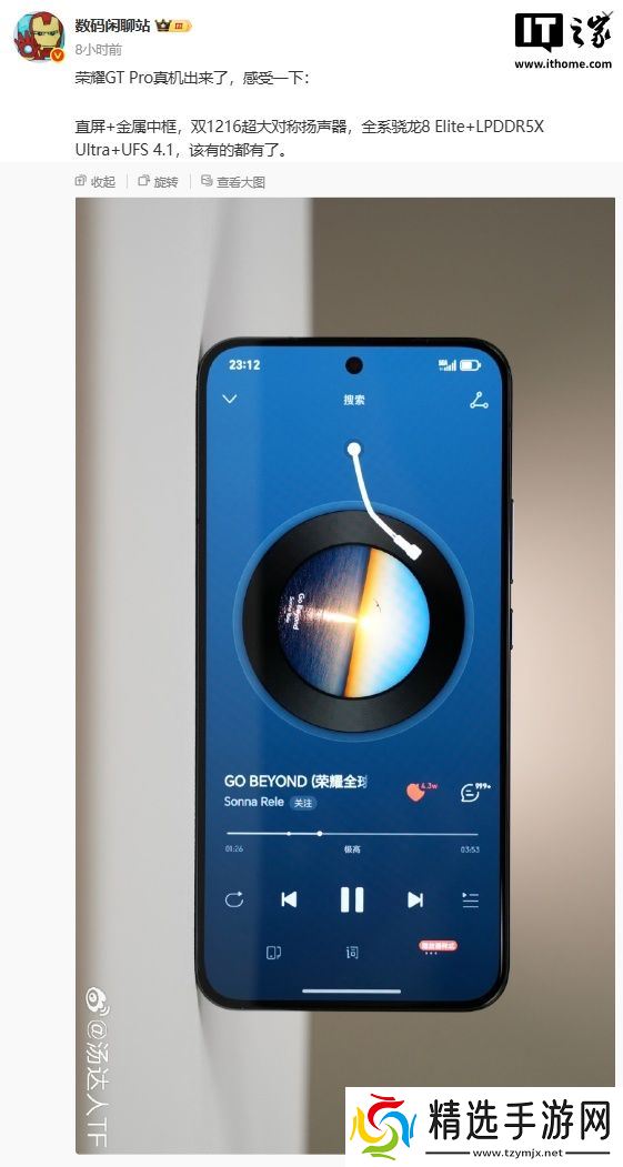 本站 4 月 12 日消息,博主@数码闲聊站 今日爆料称,荣耀 GT Pro 手机采用直屏 + 金属中框设计,双 1216 超大对称扬声器,全系骁龙 8 Elite(骁龙 8 至尊版)+LPDDR5X Ultra+UFS 4.1。