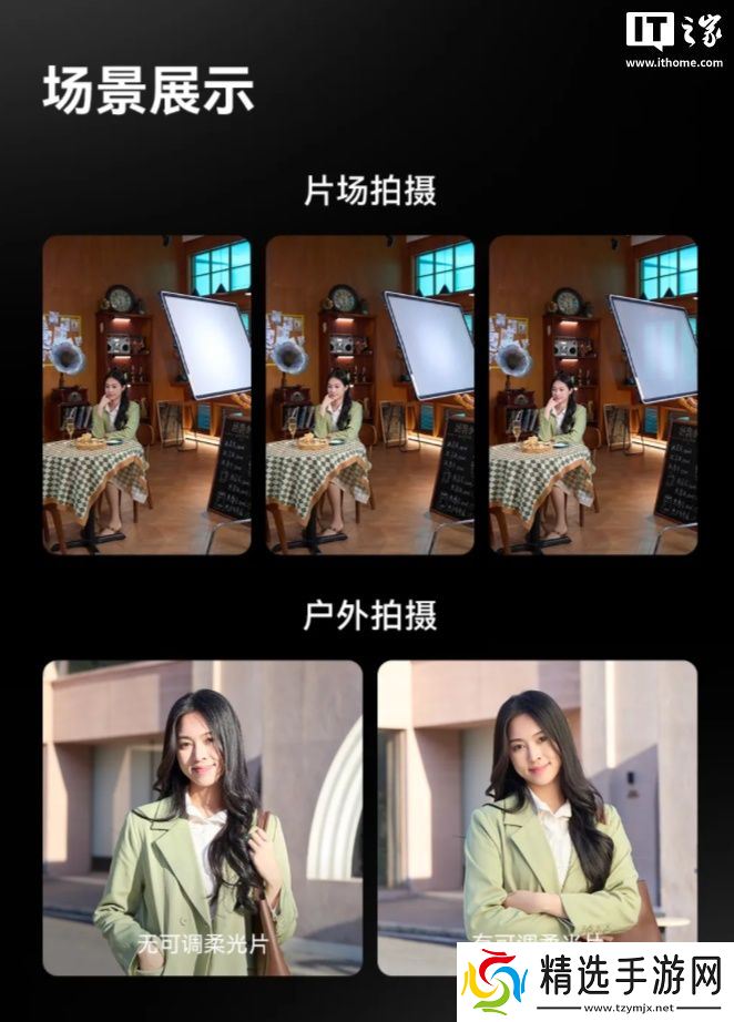 在供电方面,该系列可调柔光片拥有 USB-C 供电、V 口电池和 NPF 电池等多种供电方式,根据官方介绍,使用 100Wh 的电池在柔光片全负载状态下可连续运行 20 小时,可满足一天的高强度拍摄需求。