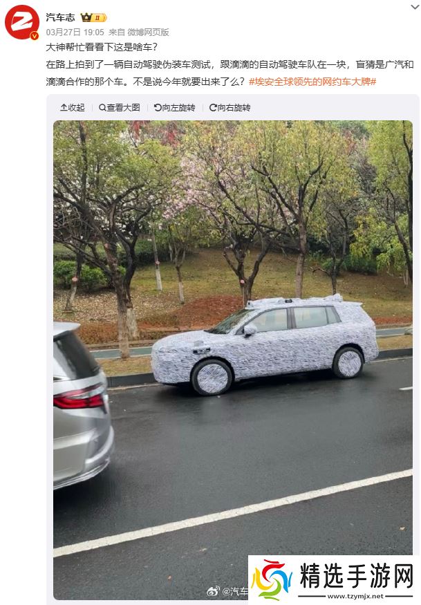 • 本站 3 月 28 日消息,博主@汽车志 昨日分享两张伪装车照片,被认为是广汽与滴滴合作首款 Robotaxi。车顶、前翼子板、车尾配备了多个传感器,预计带来高阶智驾功能。由于谍照的伪装较为厚重,当前并不能看到更多车辆细节。