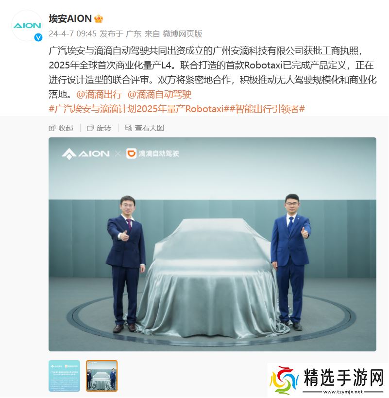 去年 4 月,广汽埃安与滴滴自动驾驶合资公司广州安滴科技有限公司获批工商执照。双方将基于广汽埃安的冗余整车平台及车辆电气架构,融合滴滴自动驾驶特有的面向出行服务的 L4 自动驾驶技术方案,合作打造 L4 无人驾驶量产车。
