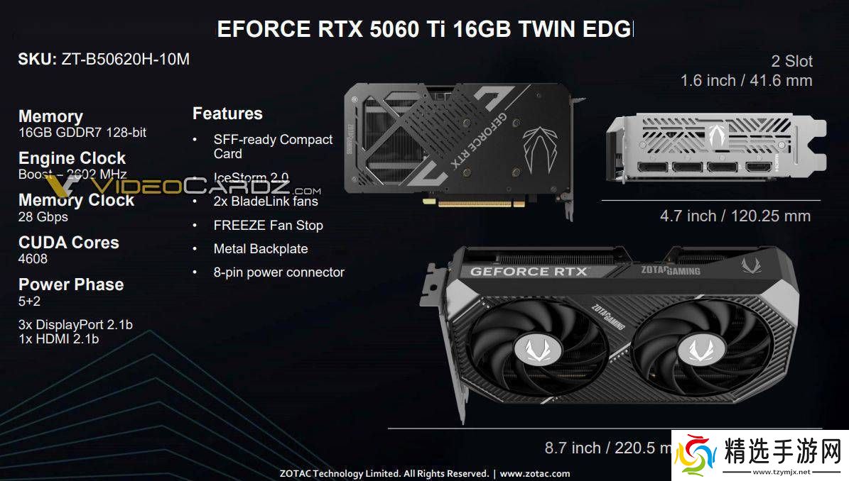 索泰此次推出的RTX 5060 Ti系列显卡包括多个型号,以满足不同用户的需求。其中,GEFORCE RTX 5060 Ti 16GB AMP型号的显卡频率高达2632 MHz,而TWIN EDGE OC和TWIN EDGE型号的显卡频率则分别为2602 MHz和2572 MHz。这些显卡均提供了出色的性能表现。