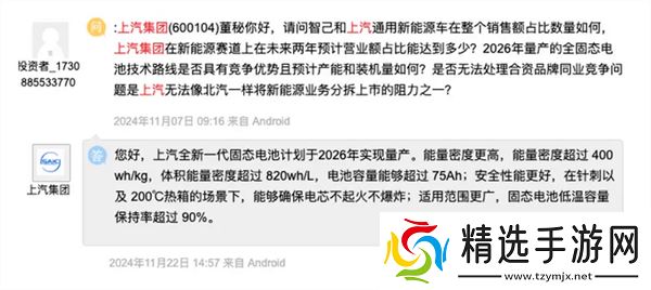 不仅如此,贾健旭还进一步透露,上汽集团的新一代固态电池将于今年年底在全新MG4车型上实现量产应用。这一消息标志着上汽集团在固态电池技术商业化方面迈出了重要一步。