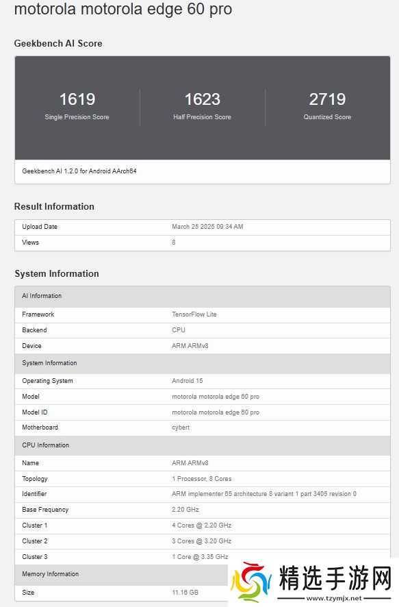 本站 3 月 27 日消息,科技媒体 The Tech Outlook 昨日(3 月 26 日)发布博文,报道称摩托罗拉 Edge 60 Pro 手机现身 GeekBench AI 数据库,曝光其 AI 性能得分及关键配置。
