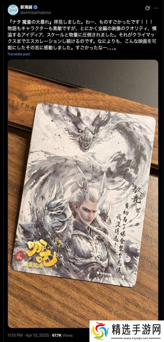 新海诚进一步指出,这部电影最令人感动之处在于其背后创作者们的执着与信念。他感叹道:“《哪吒之魔童闹海》不仅是一部电影,更是创作者们对艺术的极致追求和对观众情感的深度尊重。这样一部作品,无疑值得每一位电影爱好者去细细品味和深深敬仰。”