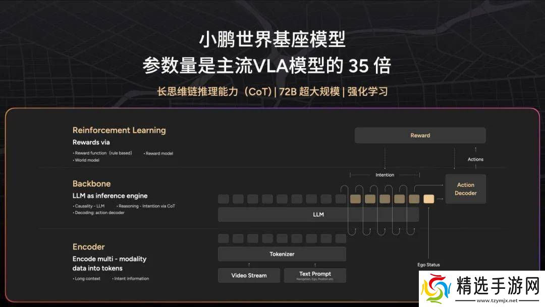 据小鹏汽车自动驾驶负责人李力耘介绍,基座模型是以大语言模型为骨干,结合海量优质驾驶数据进行多模态训练的结果。它不仅具备出色的视觉理解能力,还拥有链式推理和动作生成能力。通过强化学习训练,该模型能够不断自我进化,有望在未来实现超越人类水平的自动驾驶技术。