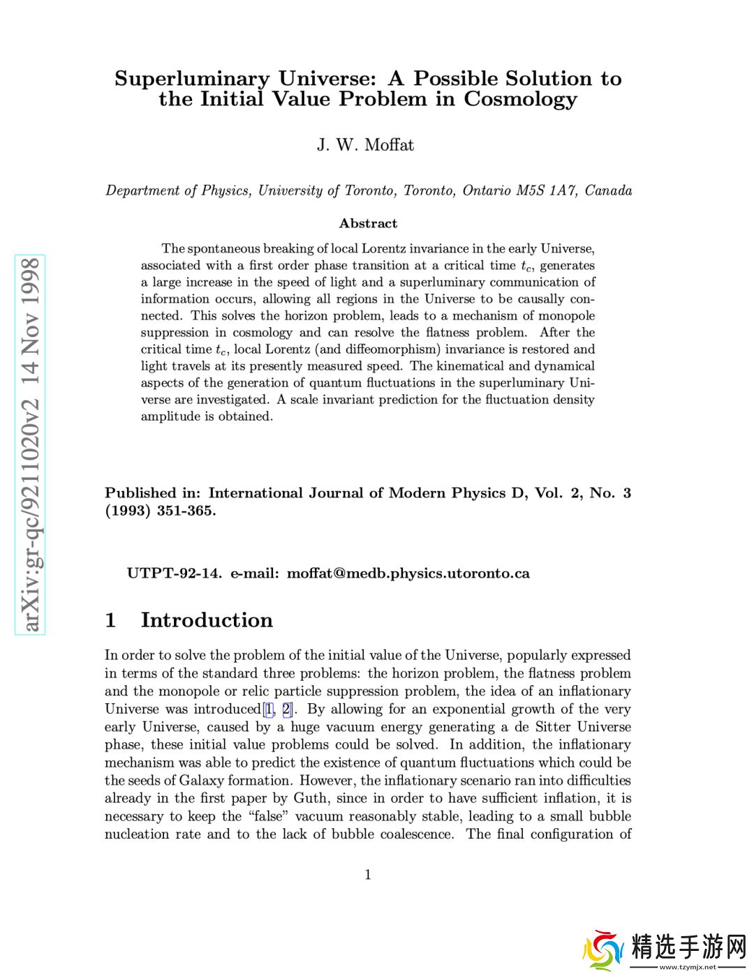 一些科学家还提出了“光速可变”的假设,以解释宇宙中的一些未解之谜。例如,加拿大圆周理论物理研究所的约翰·莫法特就提出了一种“超光速模型”,认为早期宇宙的光速可能比现在要快得多。这一假设能够解释大爆炸理论中的一些难题,如视界问题、平坦性问题和磁单极子问题。当宇宙温度降低到某个临界值以下时,光速才降到了如今测量的值。