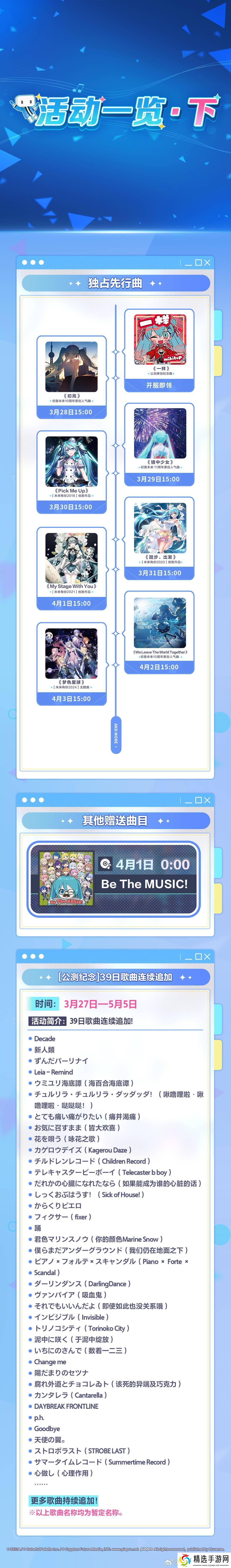 只要玩家在公测后连续登录10天,即可领取到丰厚的水晶奖励总计3900个,还有100次免费的招募机会以及大量的游戏资源。公测启动后,游戏将连续39天不断更新,为玩家带来更多精彩的乐曲。