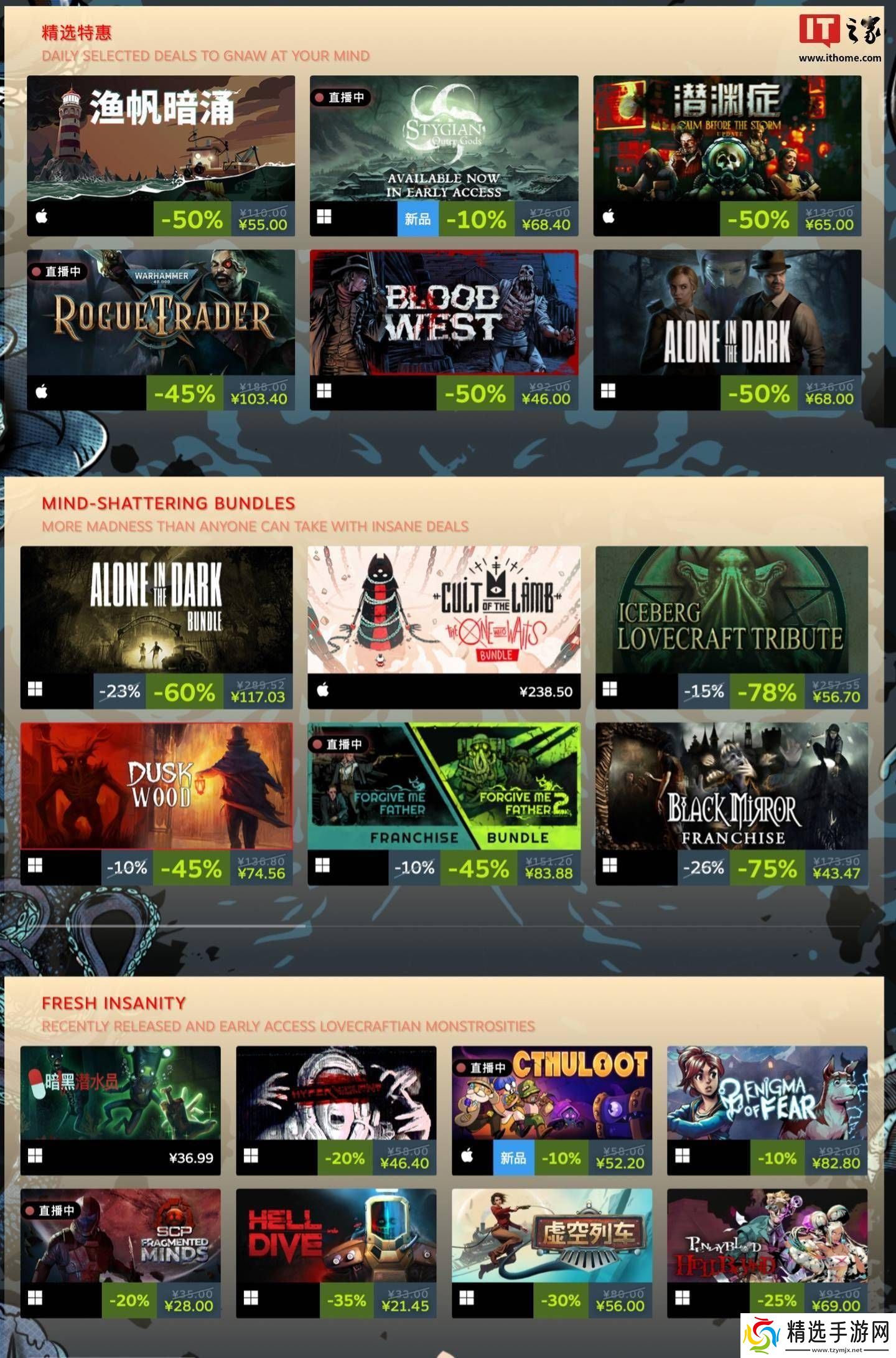 据了解,此次“克苏鲁主题周”活动的优惠将持续至4月29日,玩家可以在此期间尽情享受这些恐怖主题游戏带来的刺激与乐趣。对于喜欢恐怖游戏的玩家来说,这无疑是一个不容错过的机会。