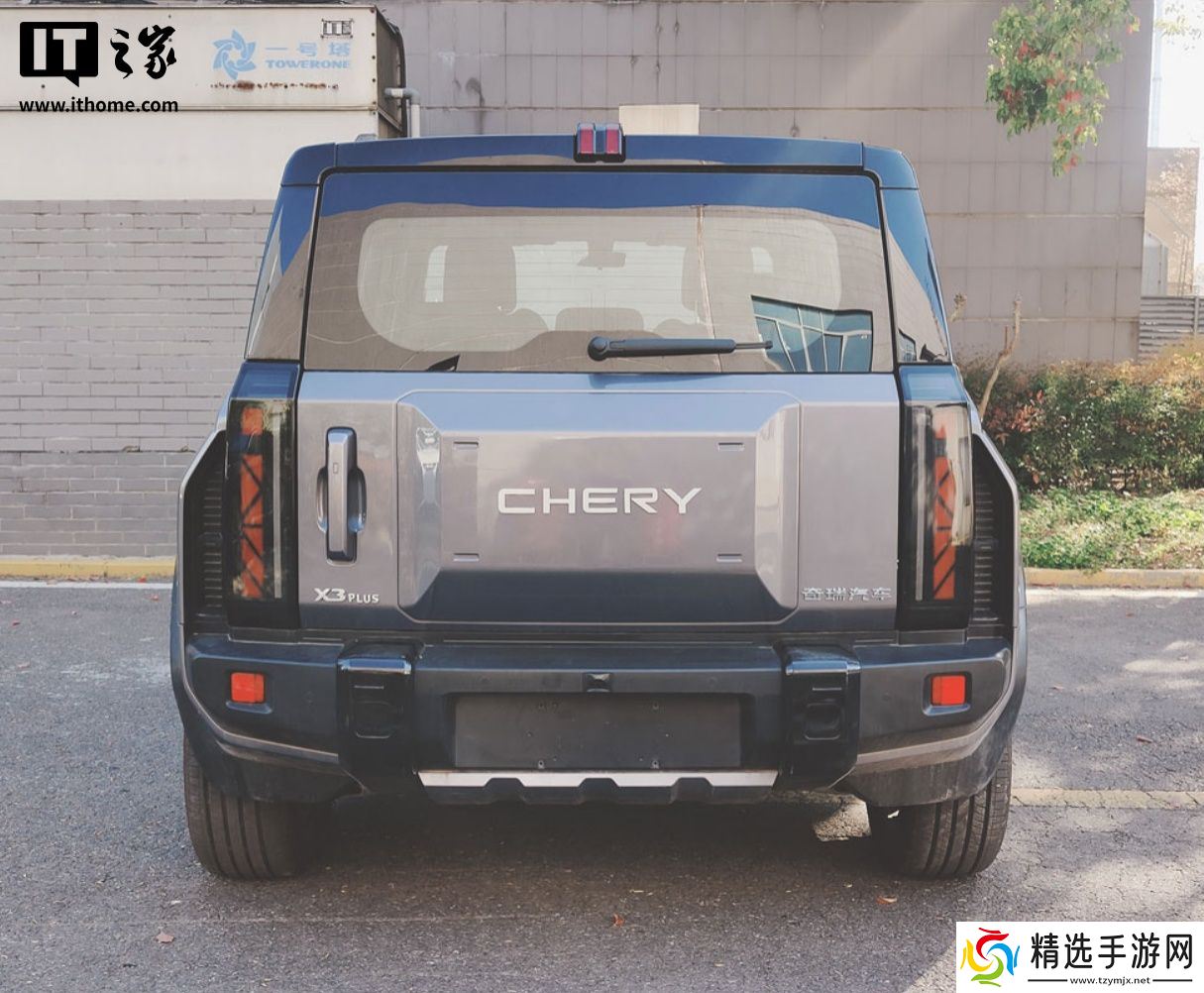 从图中可以看到,该车采用黑化外观、方盒子造型,尾部有大大的 CHERY 英文标志。